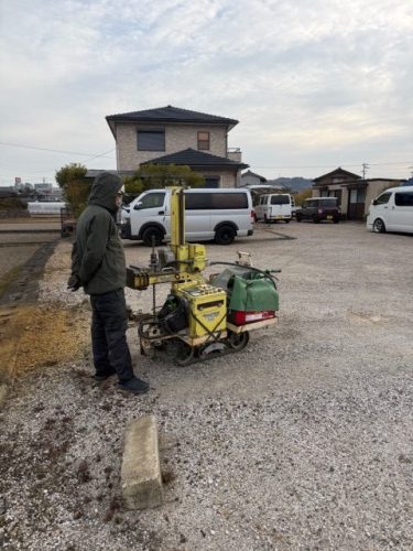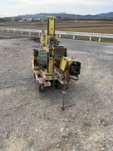 今回の建設予定地は、大型トラックの駐車場だったこともあり、地盤がガチガチで調査用のスクリューが入っていきません。